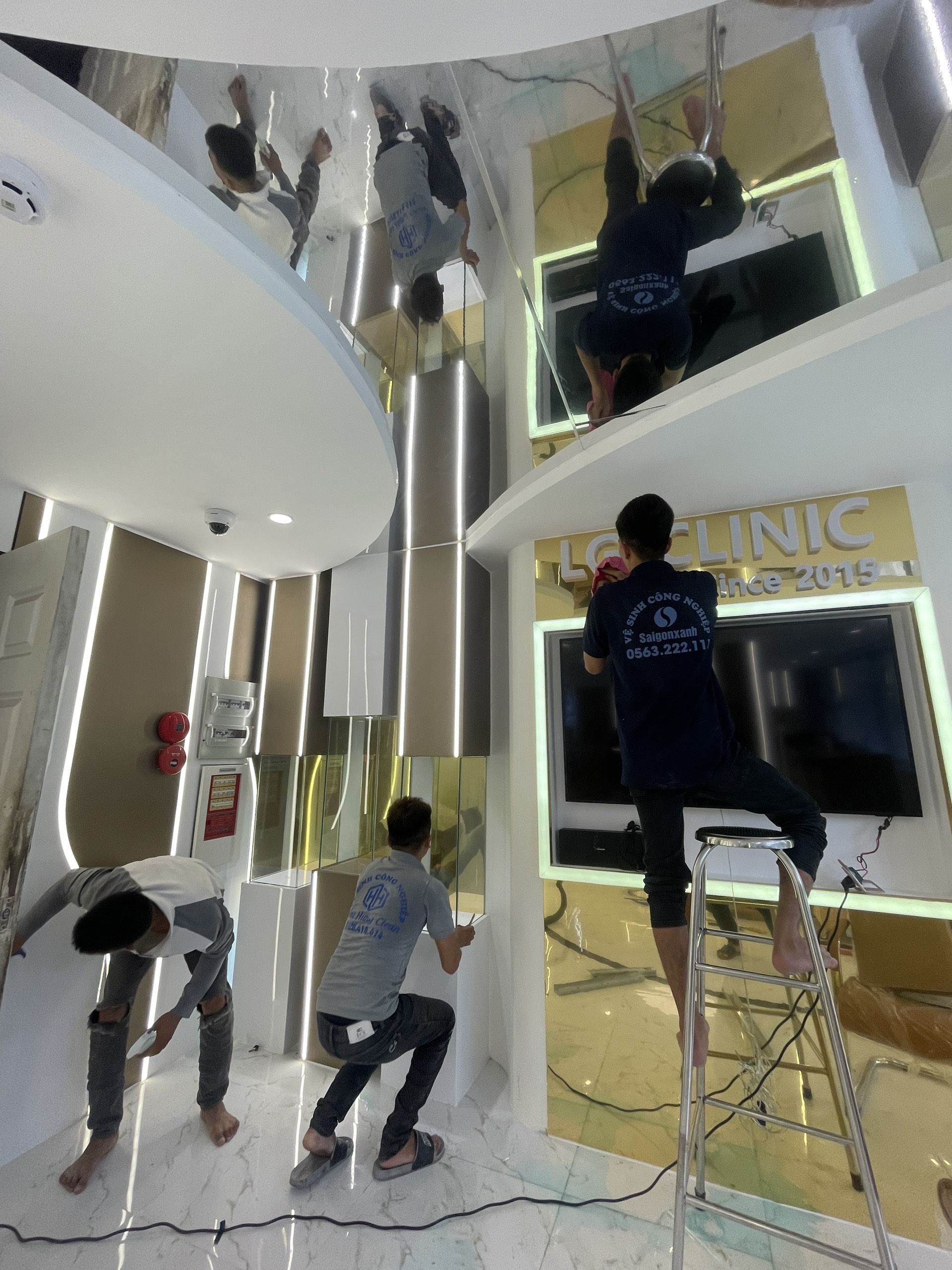 • Vệ sinh gương kính trong, ngoài tòa nhà